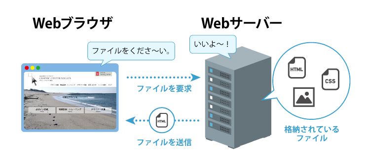 ブラウザでURLを入力したり、ブックマークでサイト名をクリックしたりすると、Webサーバーに情報を要求されます。