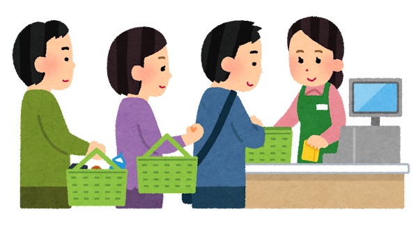 そこに、複数のお客さんが商品を買うためにレジを使用するのです。