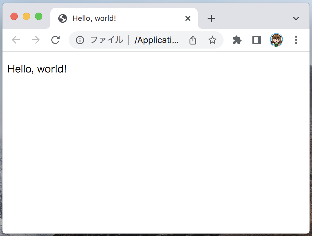 試しに「index.html」というHTMLファイルをブラウザで開いて見ると、ブラウザはコードを解釈してWebページを表示してくれます。