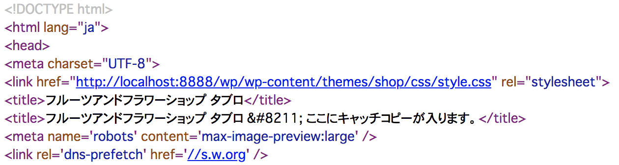 サイトのタイトルとキャッチフレーズをhead内に入れるコード